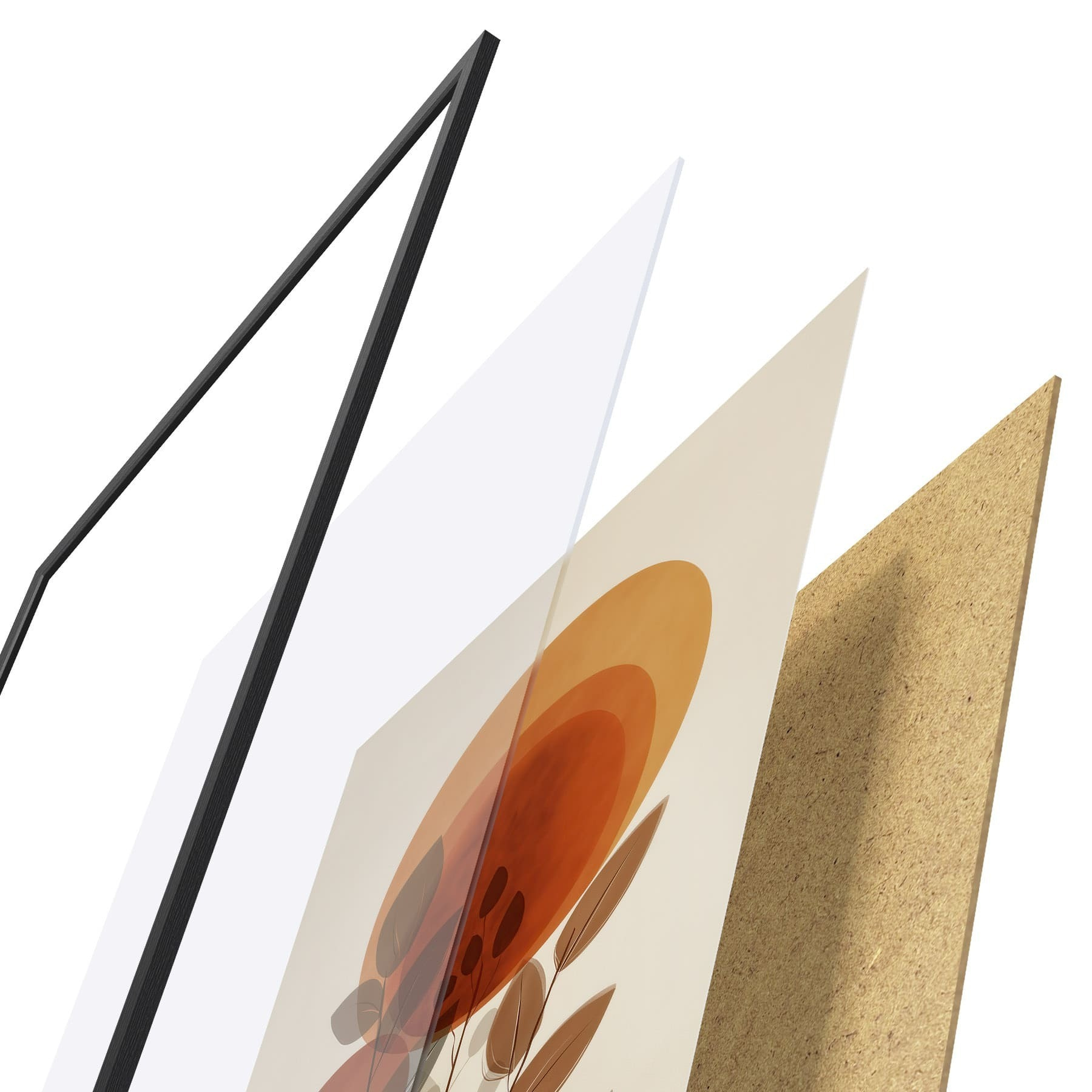 Plakát se skládá z rámu, plexiskla, tištěného obrazu a dřevotřískového podkladu. Díky úchytům na zadní straně lze plakát ihned zavěsit na zeď.