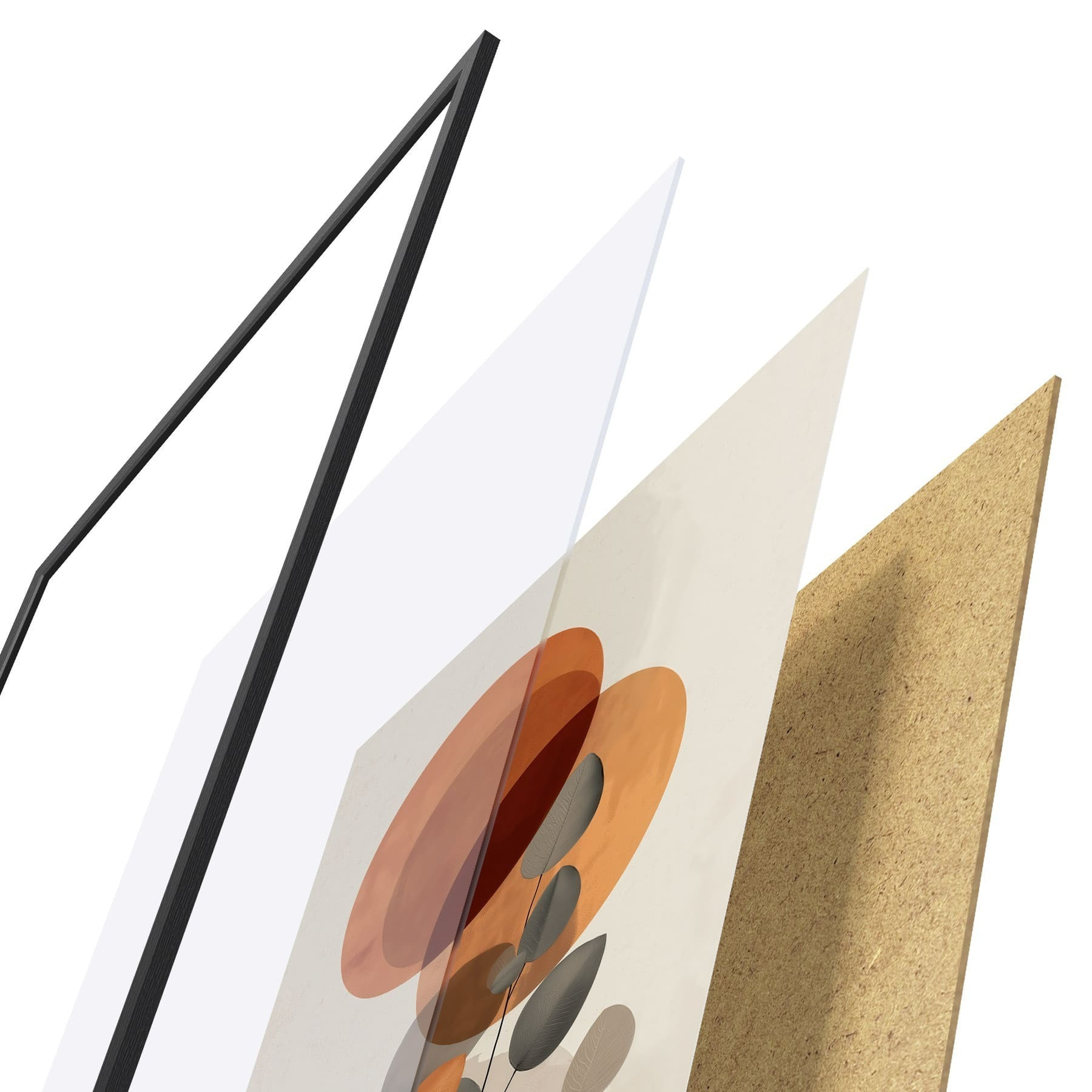 Plakát se skládá z rámu, plexiskla, tištěného obrazu a dřevotřískového podkladu. Díky úchytům na zadní straně lze plakát ihned zavěsit na zeď.