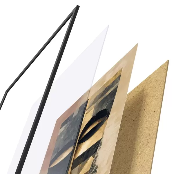 Plakát se skládá z rámu, plexiskla, tištěného obrazu a dřevotřískového podkladu. Díky úchytům na zadní straně lze plakát ihned zavěsit na zeď.