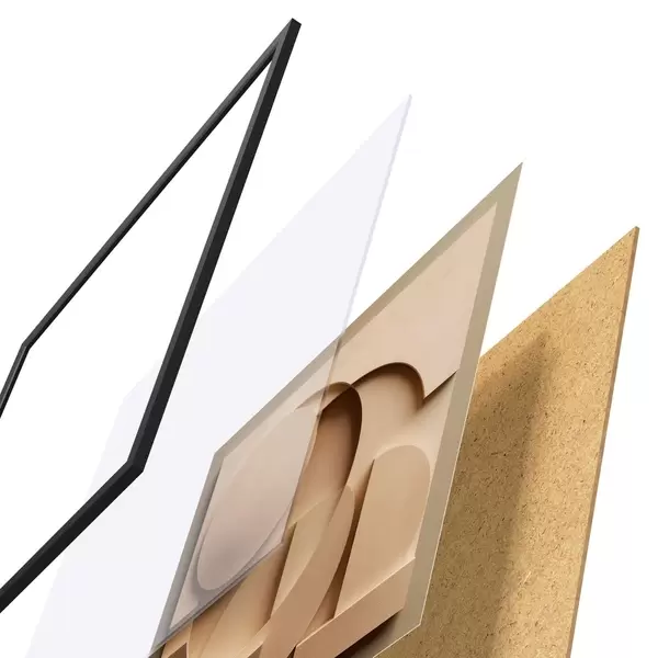 Plakát se skládá z rámu, plexiskla, tištěného obrazu a dřevotřískového podkladu. Díky úchytům na zadní straně lze plakát ihned zavěsit na zeď.