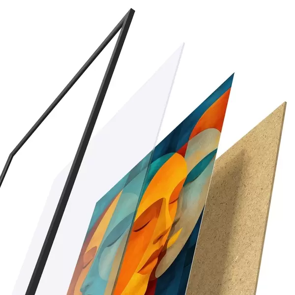 Plakát se skládá z rámu, plexiskla, tištěného obrazu a dřevotřískového podkladu. Díky úchytům na zadní straně lze plakát ihned zavěsit na zeď.