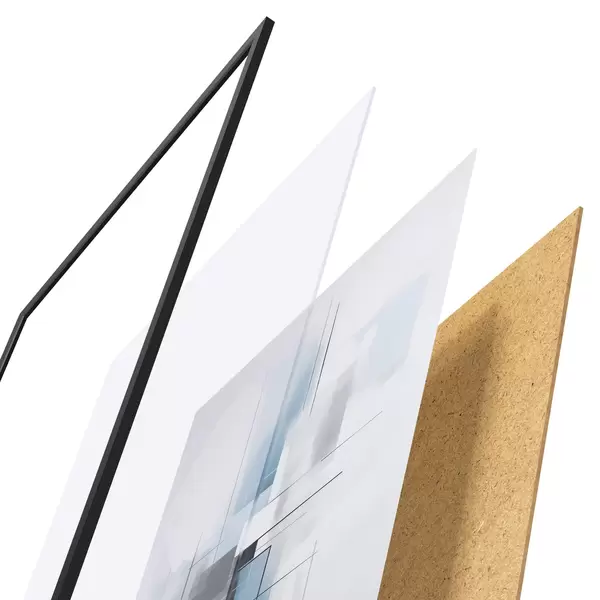 Plakát se skládá z rámu, plexiskla, tištěného obrazu a dřevotřískového podkladu. Díky úchytům na zadní straně lze plakát ihned zavěsit na zeď.