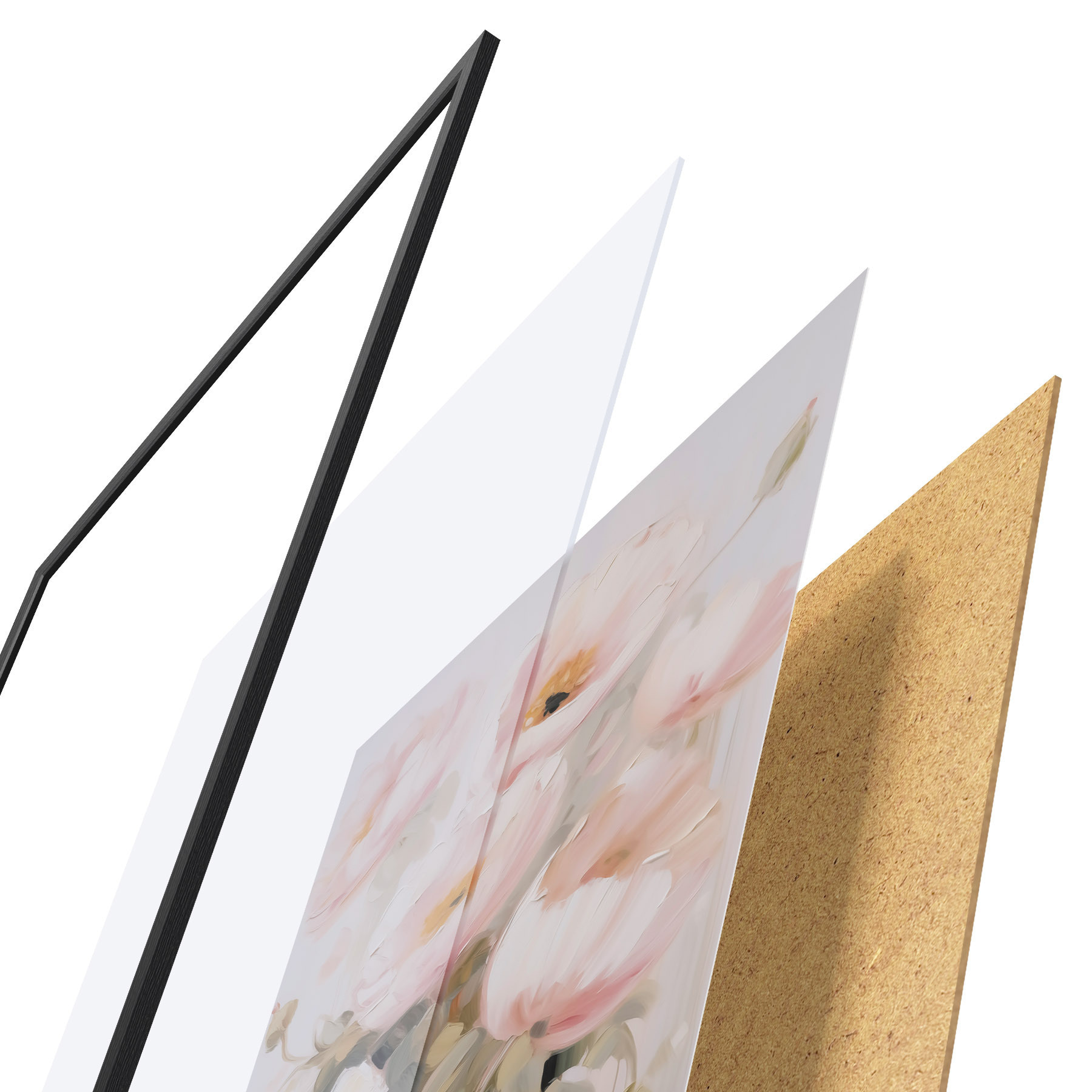 Plakát se skládá z rámu, plexiskla, tištěného obrazu a dřevotřískového podkladu. Díky úchytům na zadní straně lze plakát ihned zavěsit na zeď.