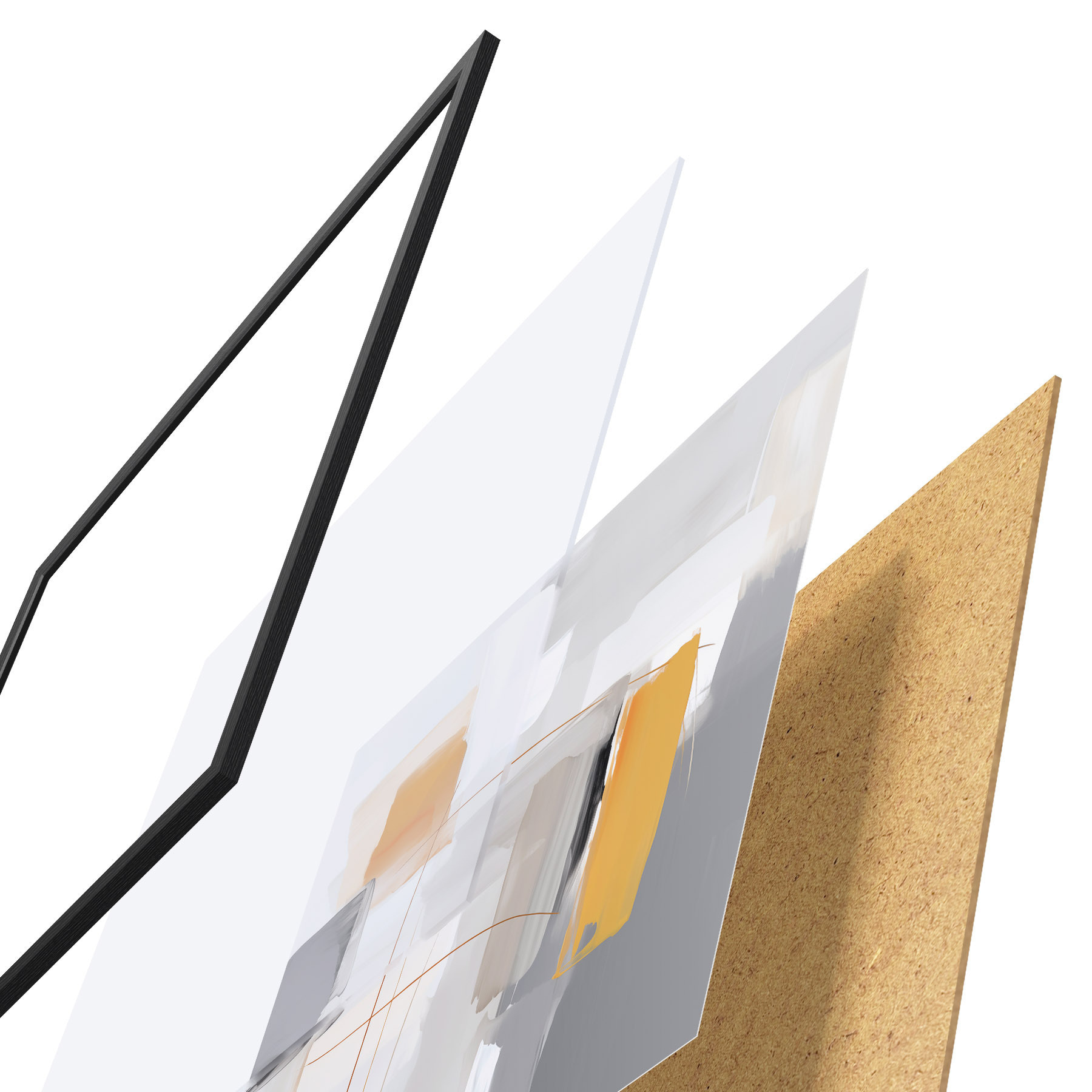 Plakát se skládá z rámu, plexiskla, tištěného obrazu a dřevotřískového podkladu. Díky úchytům na zadní straně lze plakát ihned zavěsit na zeď.