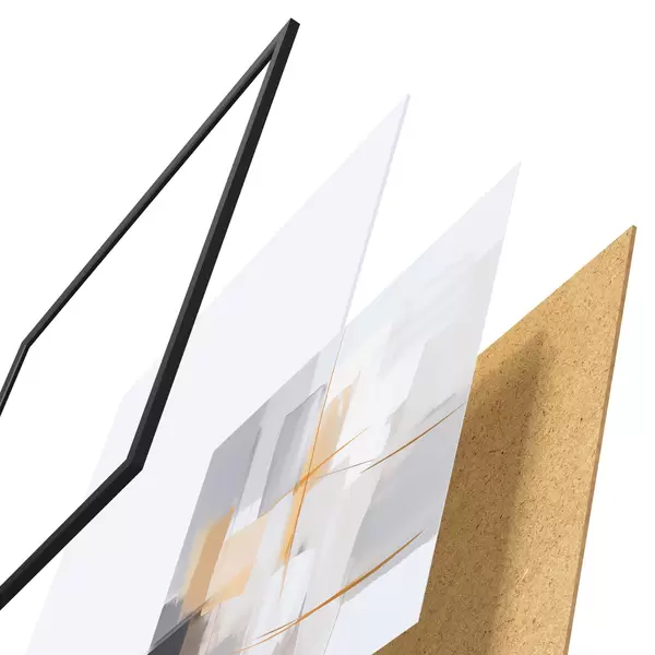 Plakát se skládá z rámu, plexiskla, tištěného obrazu a dřevotřískového podkladu. Díky úchytům na zadní straně lze plakát ihned zavěsit na zeď.