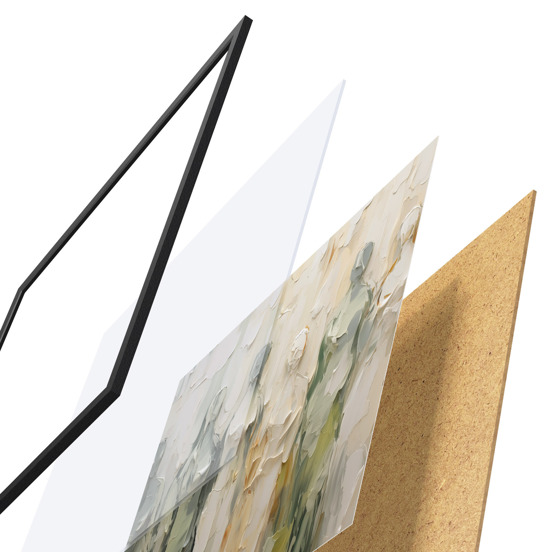 Plakát se skládá z rámu, plexiskla, tištěného obrazu a dřevotřískového podkladu. Díky úchytům na zadní straně lze plakát ihned zavěsit na zeď.