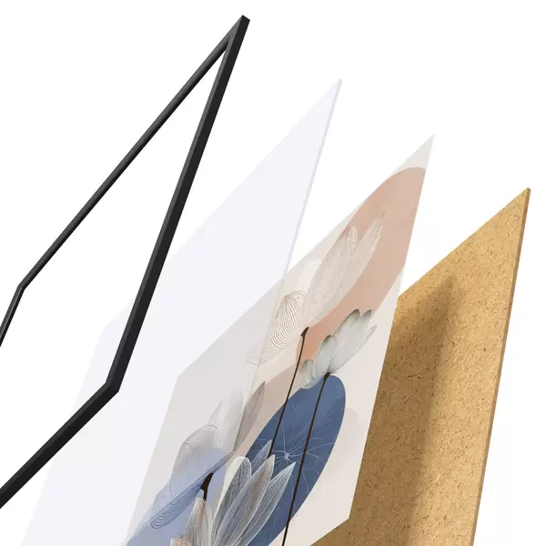 Plakát se skládá z rámu, plexiskla, tištěného obrazu a dřevotřískového podkladu. Díky úchytům na zadní straně lze plakát ihned zavěsit na zeď.