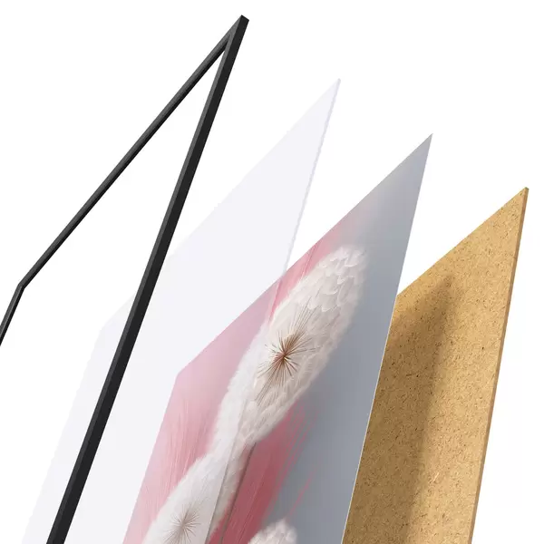 Plakát se skládá z rámu, plexiskla, tištěného obrazu a dřevotřískového podkladu. Díky úchytům na zadní straně lze plakát ihned zavěsit na zeď.