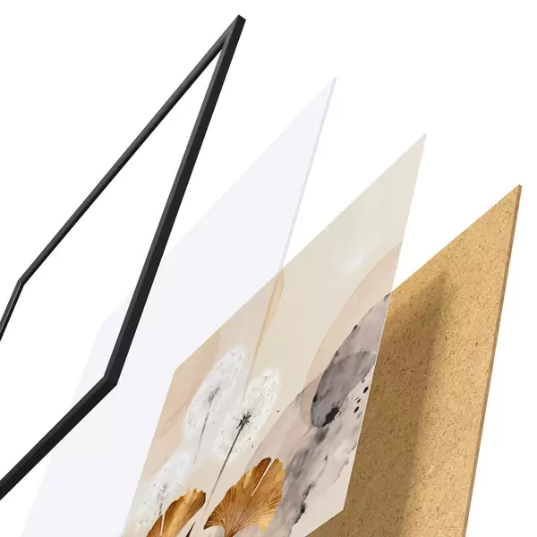Plakát se skládá z rámu, plexiskla, tištěného obrazu a dřevotřískového podkladu. Díky úchytům na zadní straně lze plakát ihned zavěsit na zeď.