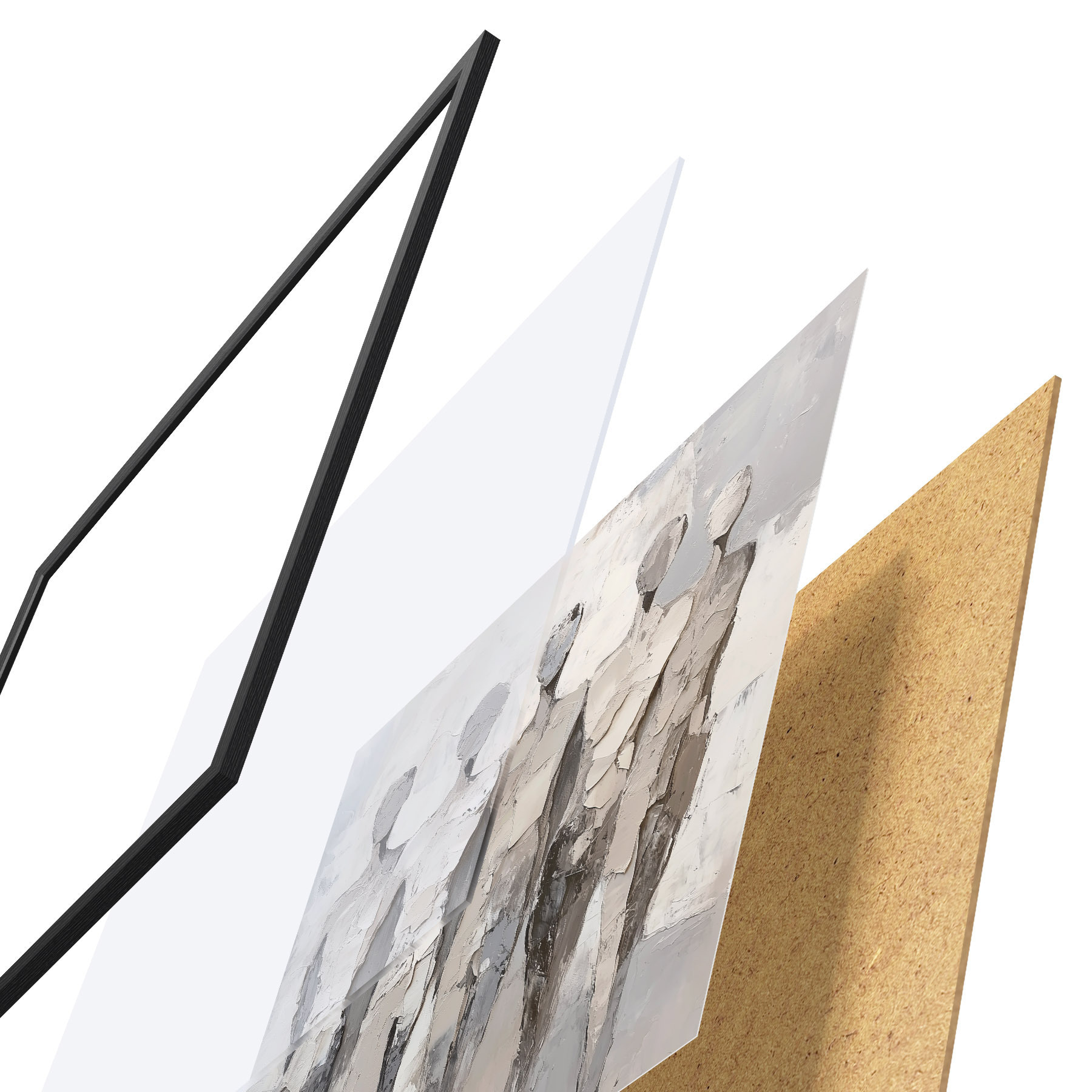 Plakát se skládá z rámu, plexiskla, tištěného obrazu a dřevotřískového podkladu. Díky úchytům na zadní straně lze plakát ihned zavěsit na zeď.