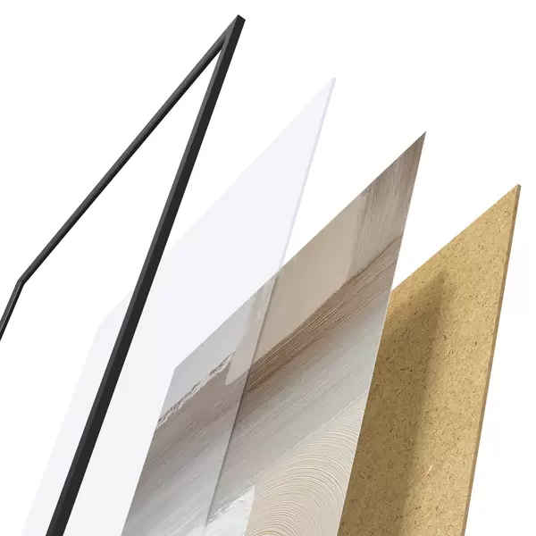 Plakát se skládá z rámu, plexiskla, tištěného obrazu a dřevotřískového podkladu. Díky úchytům na zadní straně lze plakát ihned zavěsit na zeď.