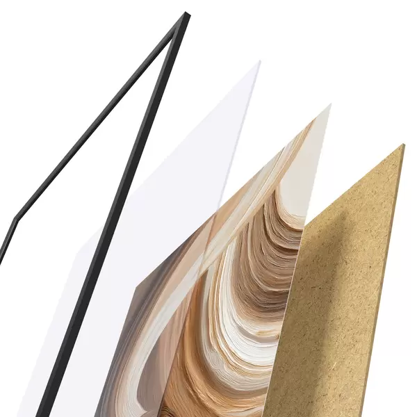 Plakát se skládá z rámu, plexiskla, tištěného obrazu a dřevotřískového podkladu. Díky úchytům na zadní straně lze plakát ihned zavěsit na zeď.