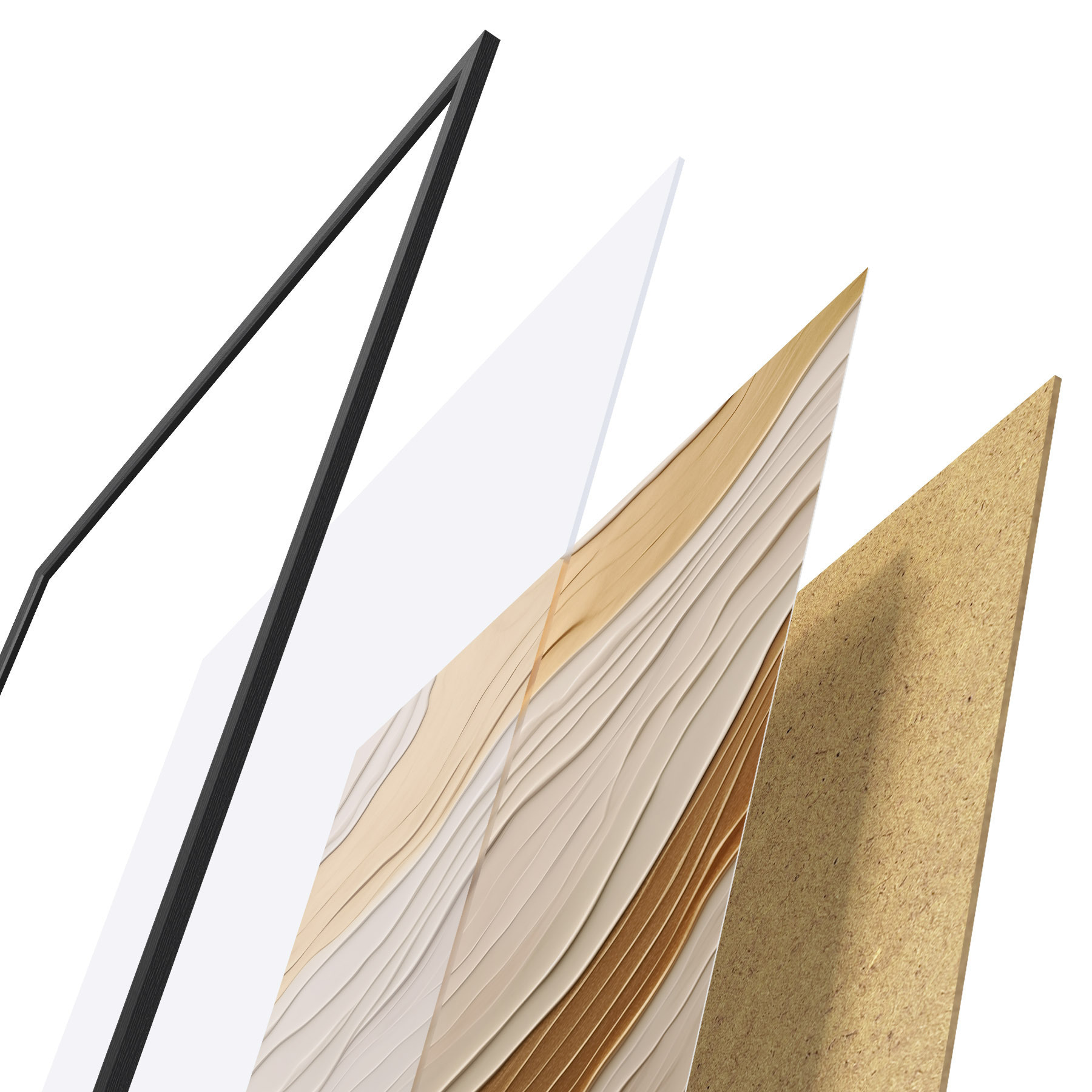 Plakát se skládá z rámu, plexiskla, tištěného obrazu a dřevotřískového podkladu. Díky úchytům na zadní straně lze plakát ihned zavěsit na zeď.