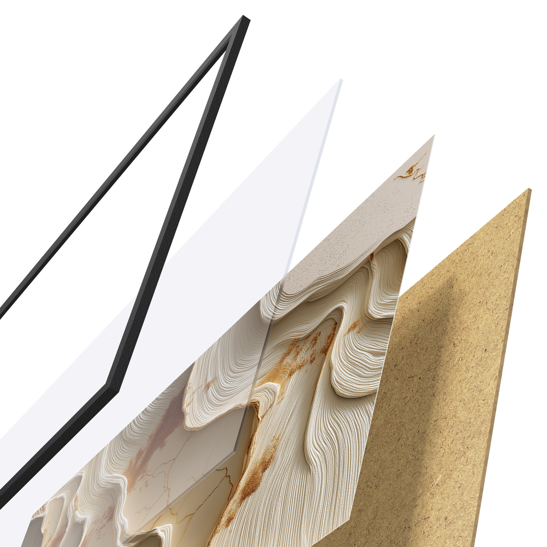 Plakát se skládá z rámu, plexiskla, tištěného obrazu a dřevotřískového podkladu. Díky úchytům na zadní straně lze plakát ihned zavěsit na zeď.