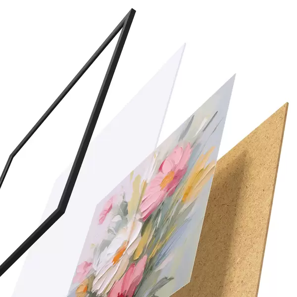 Plakát se skládá z rámu, plexiskla, tištěného obrazu a dřevotřískového podkladu. Díky úchytům na zadní straně lze plakát ihned zavěsit na zeď.