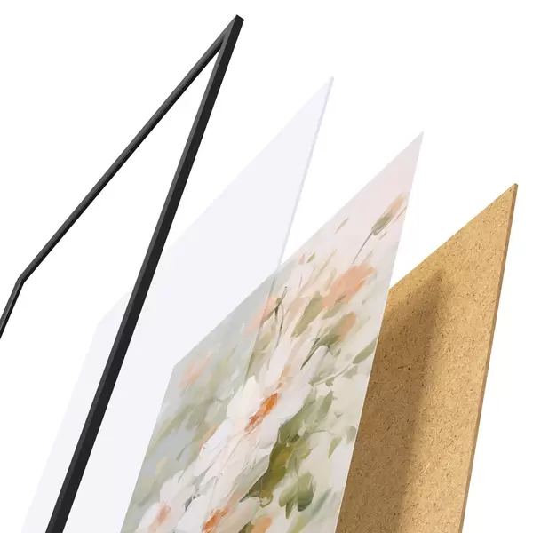 Plakát se skládá z rámu, plexiskla, tištěného obrazu a dřevotřískového podkladu. Díky úchytům na zadní straně lze plakát ihned zavěsit na zeď.