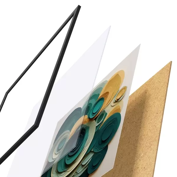Plakát se skládá z rámu, plexiskla, tištěného obrazu a dřevotřískového podkladu. Díky úchytům na zadní straně lze plakát ihned zavěsit na zeď.