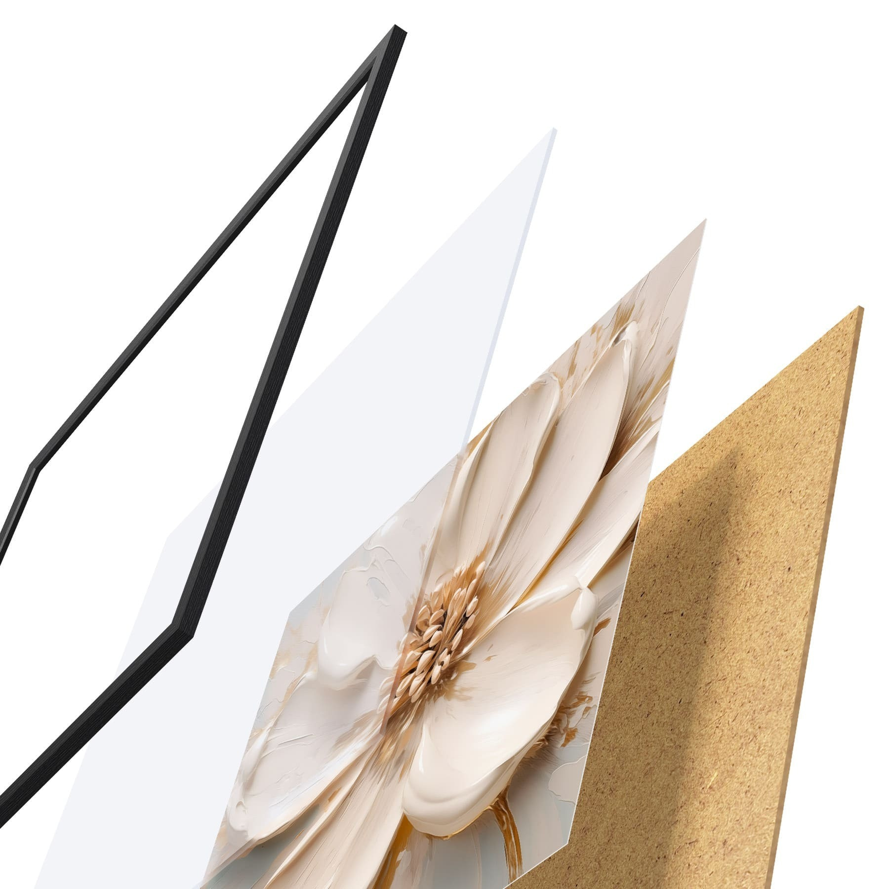 Plakát se skládá z rámu, plexiskla, tištěného obrazu a dřevotřískového podkladu. Díky úchytům na zadní straně lze plakát ihned zavěsit na zeď.