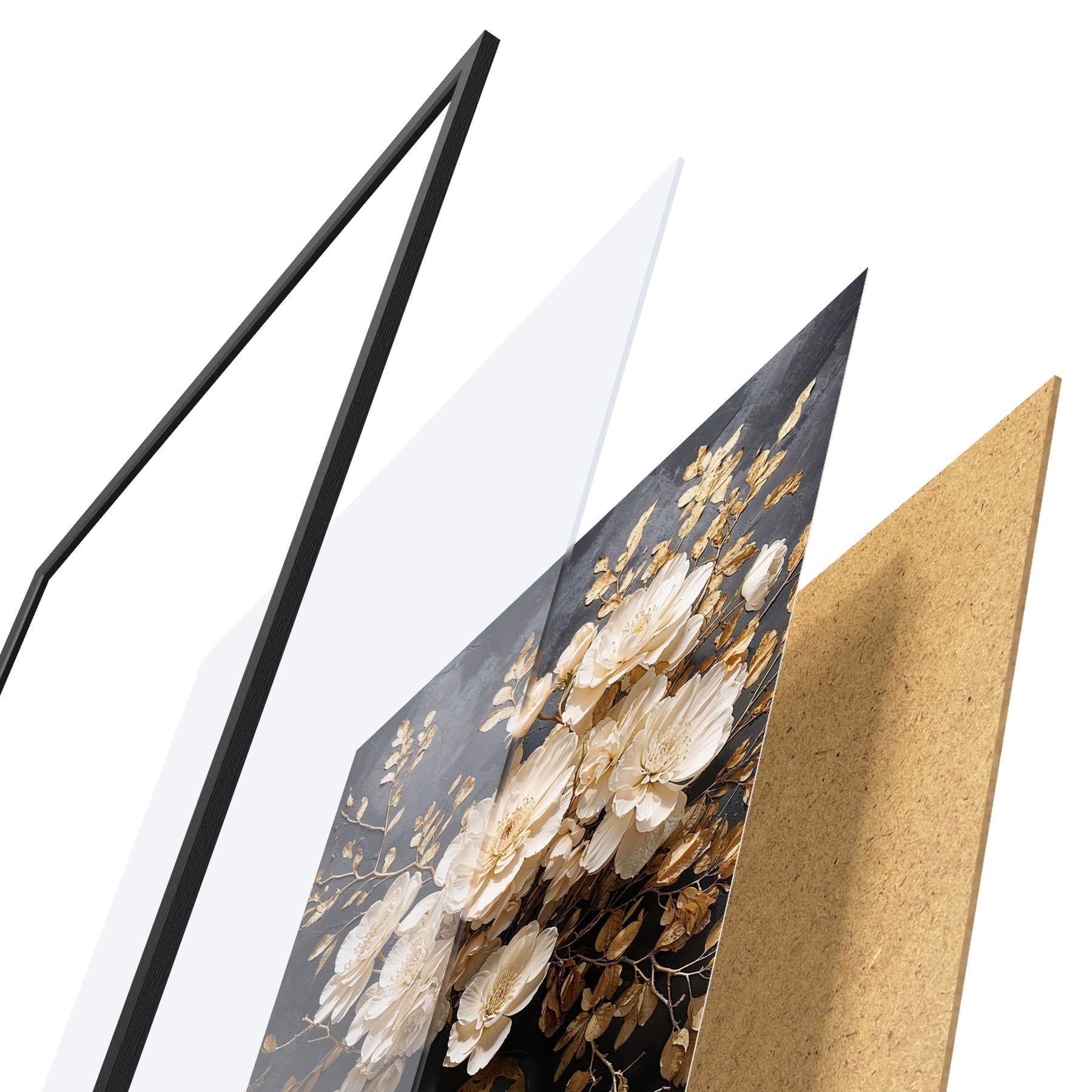 Plakát se skládá z rámu, plexiskla, tištěného obrazu a dřevotřískového podkladu. Díky úchytům na zadní straně lze plakát ihned zavěsit na zeď.