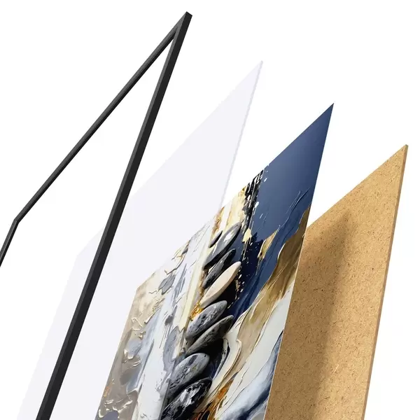 Plakát se skládá z rámu, plexiskla, tištěného obrazu a dřevotřískového podkladu. Díky úchytům na zadní straně lze plakát ihned zavěsit na zeď.