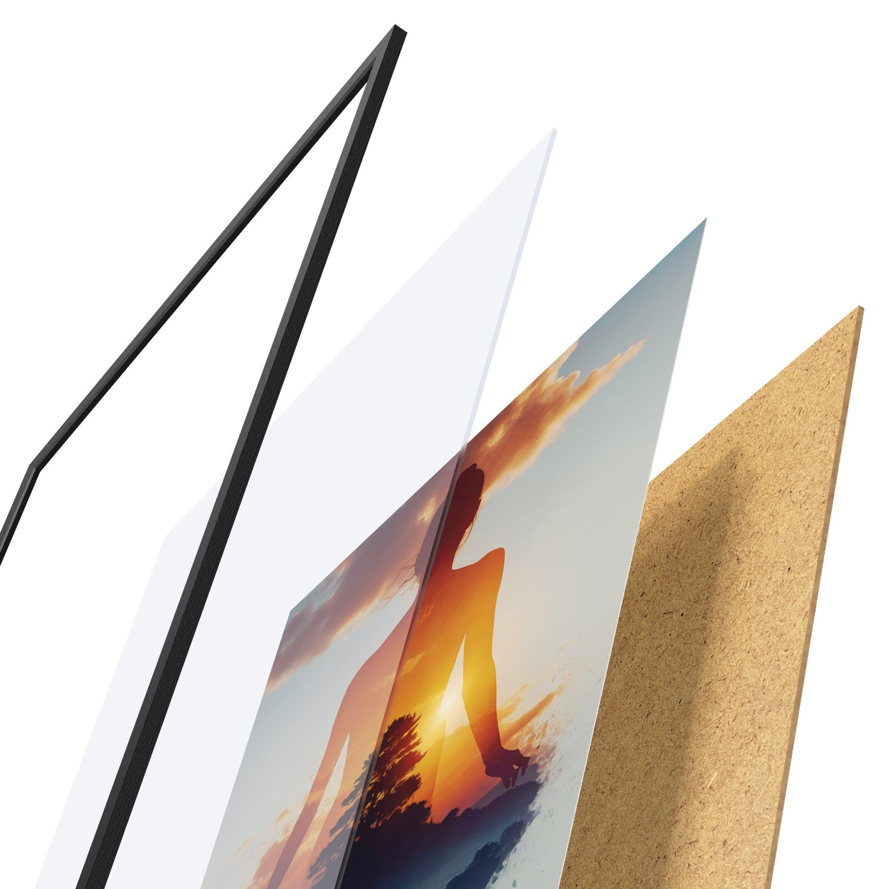 Plakát se skládá z rámu, plexiskla, tištěného obrazu a dřevotřískového podkladu. Díky úchytům na zadní straně lze plakát ihned zavěsit na zeď.