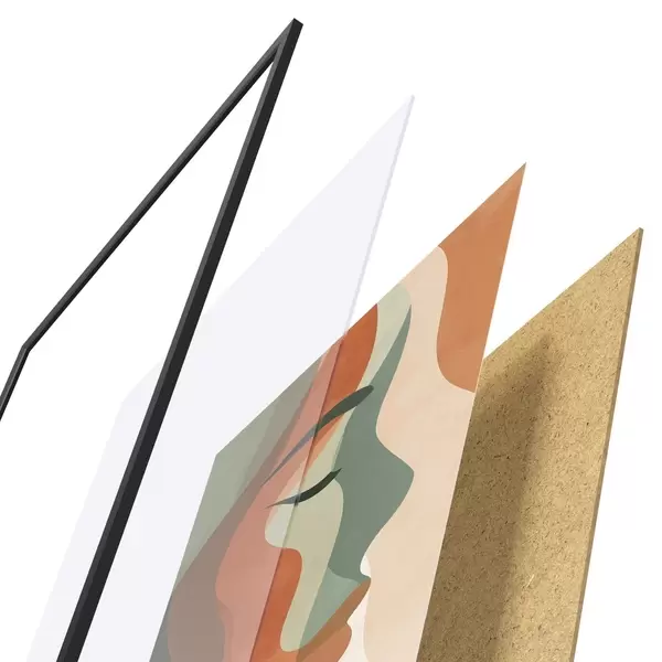 Plakát se skládá z rámu, plexiskla, tištěného obrazu a dřevotřískového podkladu. Díky úchytům na zadní straně lze plakát ihned zavěsit na zeď.