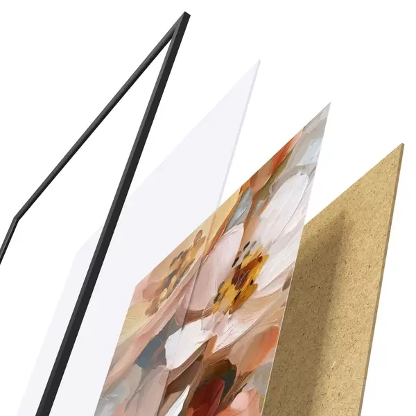 Plakát se skládá z rámu, plexiskla, tištěného obrazu a dřevotřískového podkladu. Díky úchytům na zadní straně lze plakát ihned zavěsit na zeď.
