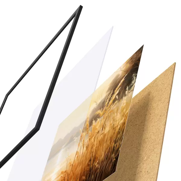 Plakát se skládá z rámu, plexiskla, tištěného obrazu a dřevotřískového podkladu. Díky úchytům na zadní straně lze plakát ihned zavěsit na zeď.