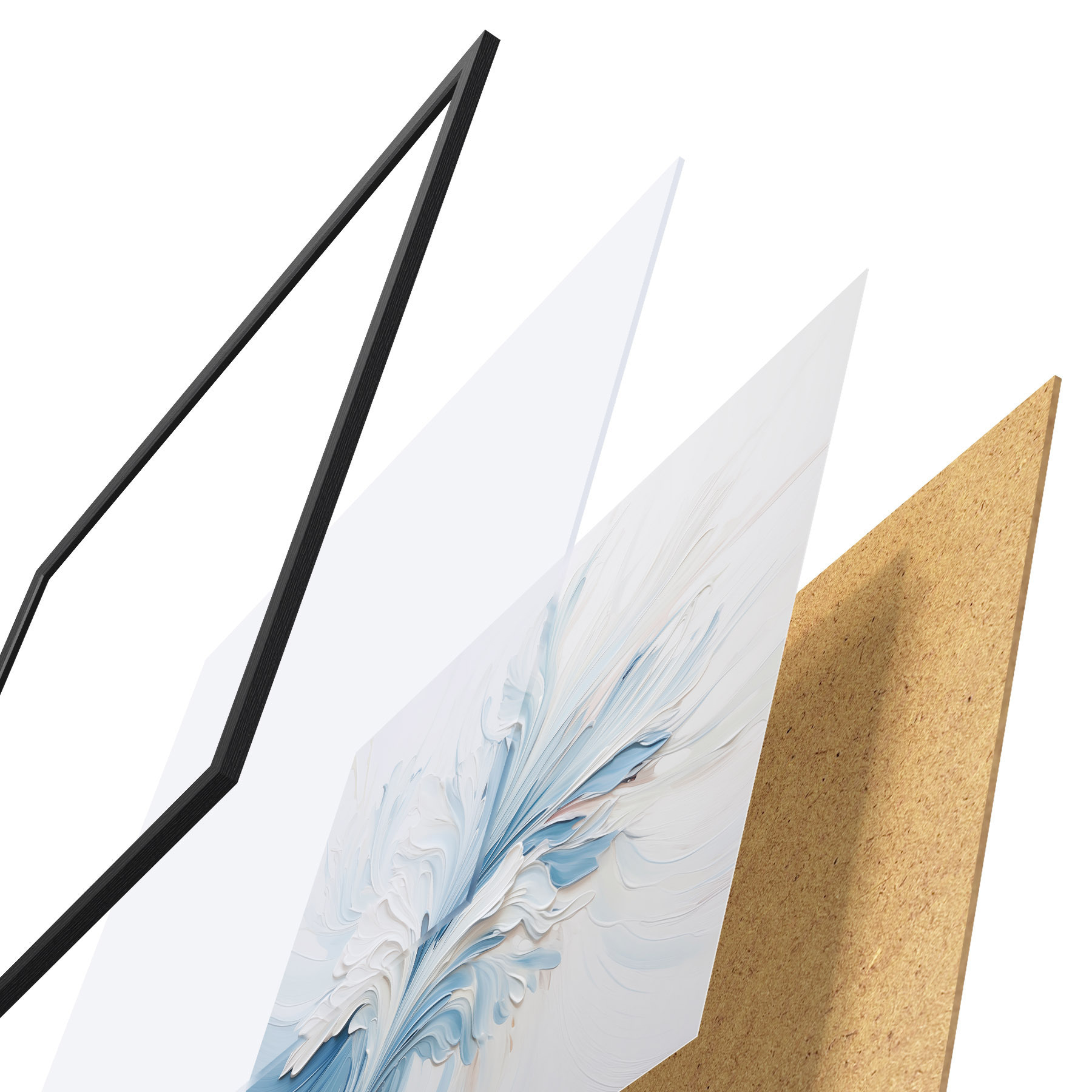 Plakát se skládá z rámu, plexiskla, tištěného obrazu a dřevotřískového podkladu. Díky úchytům na zadní straně lze plakát ihned zavěsit na zeď.