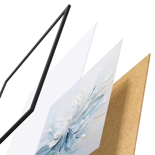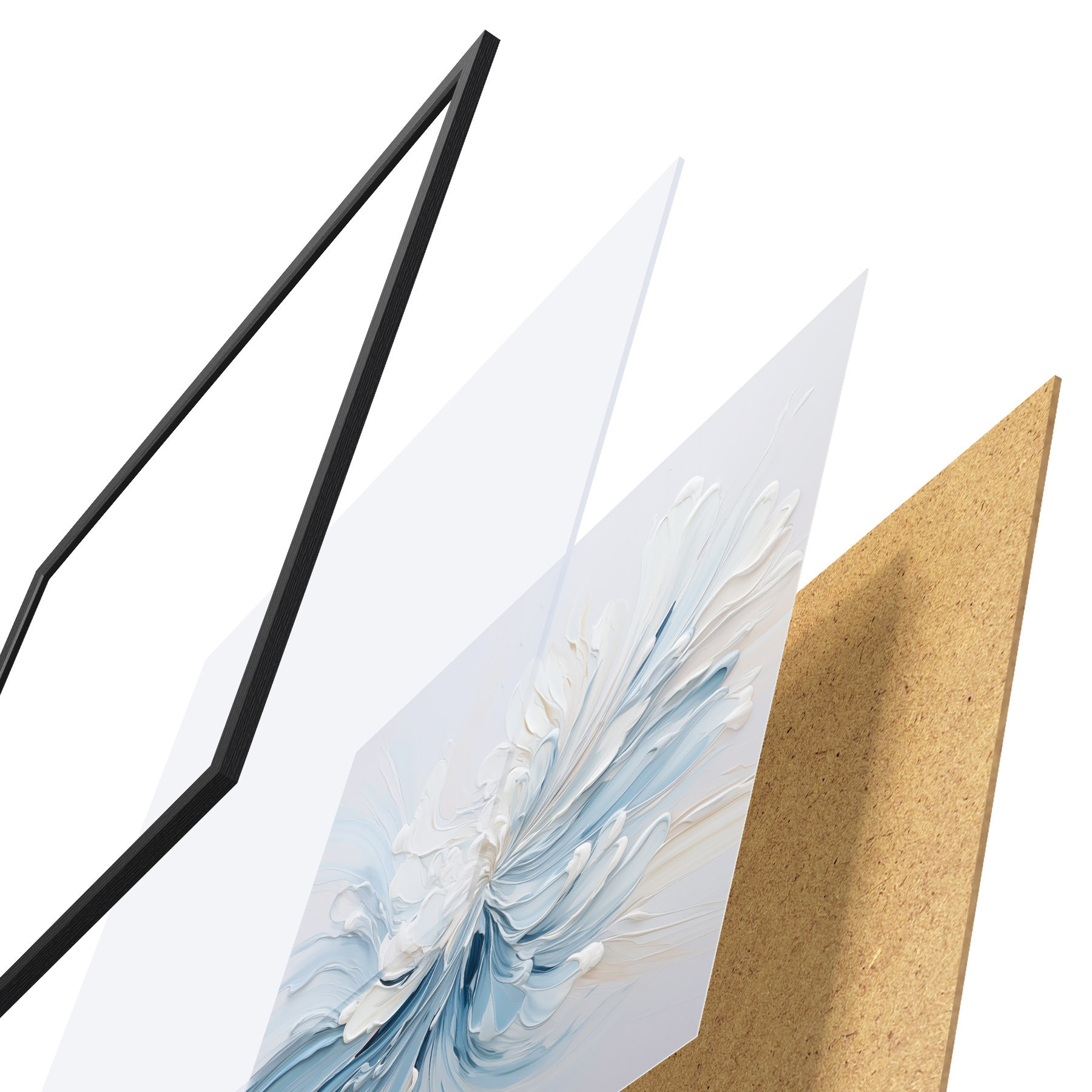 Plakát se skládá z rámu, plexiskla, tištěného obrazu a dřevotřískového podkladu. Díky úchytům na zadní straně lze plakát ihned zavěsit na zeď.