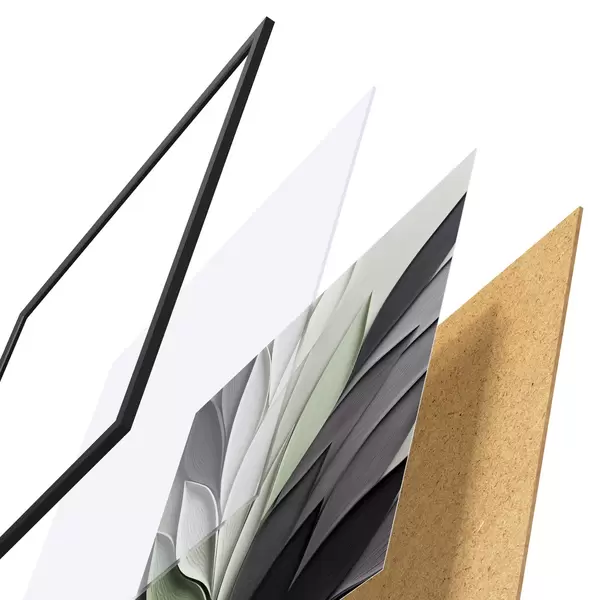 Plakát se skládá z rámu, plexiskla, tištěného obrazu a dřevotřískového podkladu. Díky úchytům na zadní straně lze plakát ihned zavěsit na zeď.