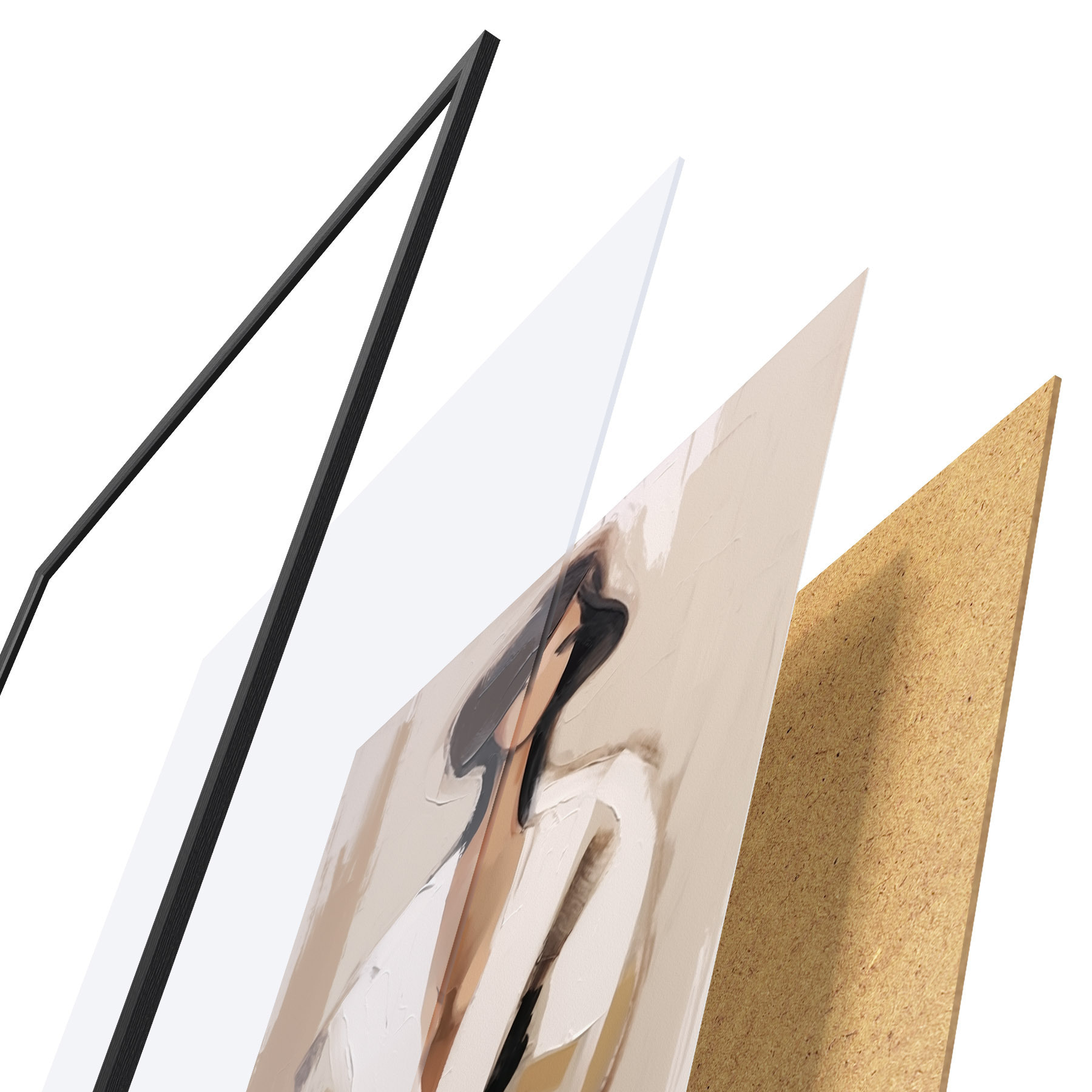 Plakát se skládá z rámu, plexiskla, tištěného obrazu a dřevotřískového podkladu. Díky úchytům na zadní straně lze plakát ihned zavěsit na zeď.