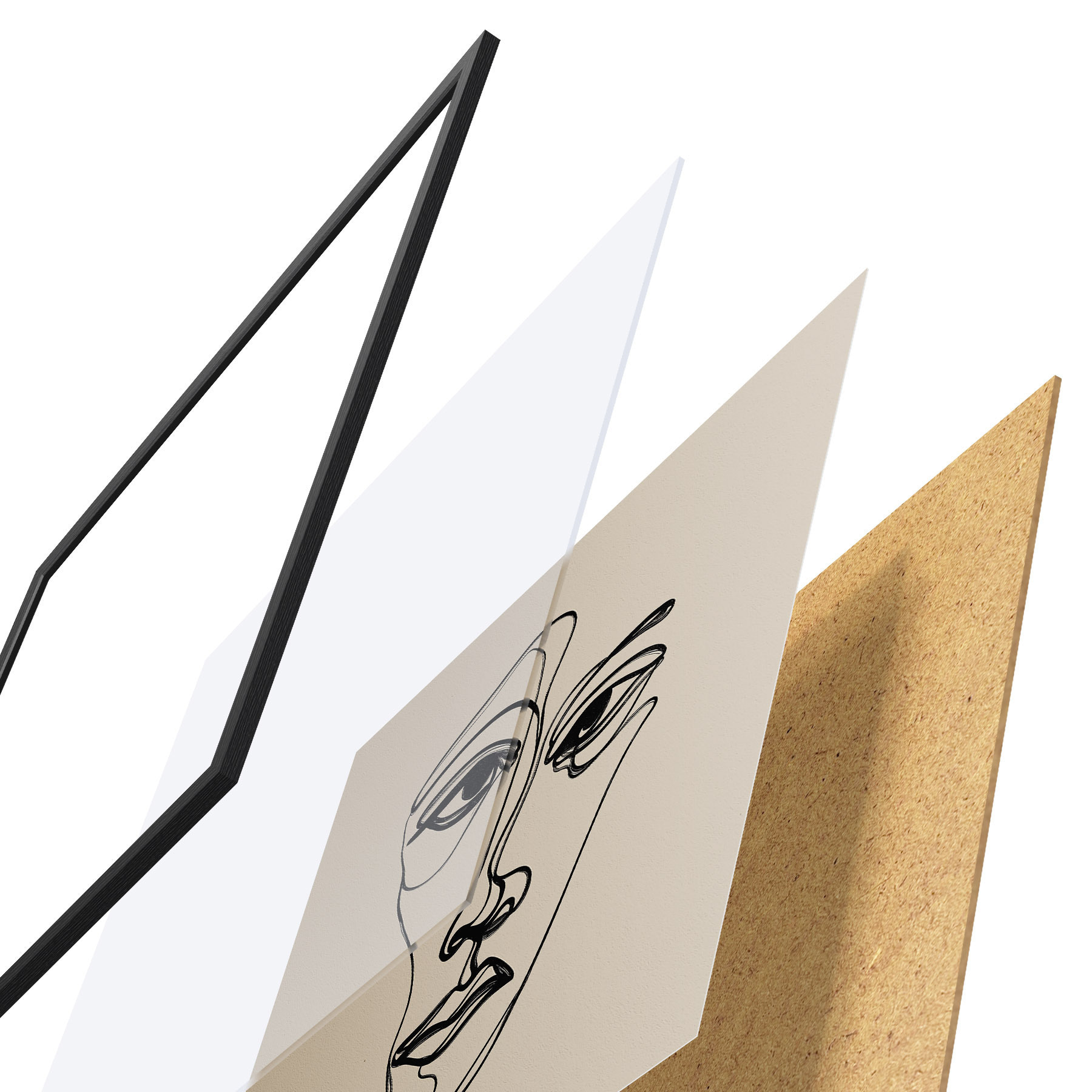 Plakát se skládá z rámu, plexiskla, tištěného obrazu a dřevotřískového podkladu. Díky úchytům na zadní straně lze plakát ihned zavěsit na zeď.