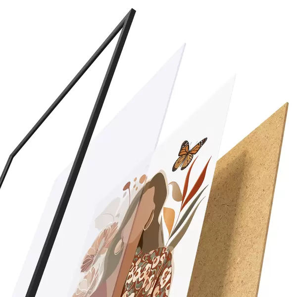 Plakát se skládá z rámu, plexiskla, tištěného obrazu a dřevotřískového podkladu. Díky úchytům na zadní straně lze plakát ihned zavěsit na zeď.