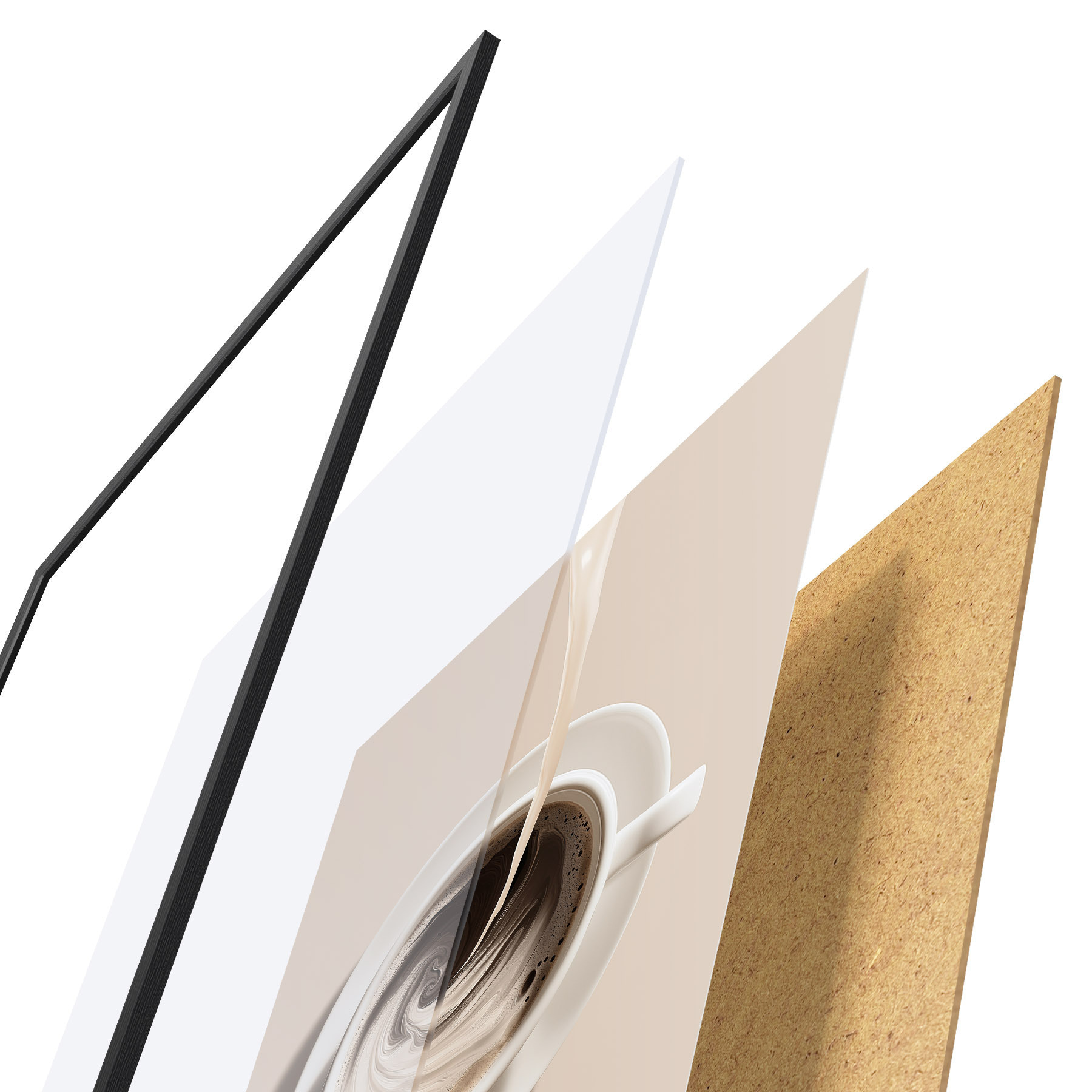 Plakát se skládá z rámu, plexiskla, tištěného obrazu a dřevotřískového podkladu. Díky úchytům na zadní straně lze plakát ihned zavěsit na zeď.
