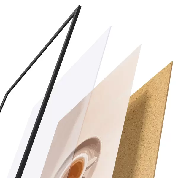 Plakát se skládá z rámu, plexiskla, tištěného obrazu a dřevotřískového podkladu. Díky úchytům na zadní straně lze plakát ihned zavěsit na zeď.