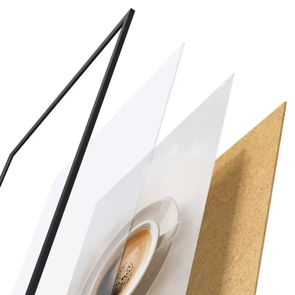 Plakát se skládá z rámu, plexiskla, tištěného obrazu a dřevotřískového podkladu. Díky úchytům na zadní straně lze plakát ihned zavěsit na zeď.