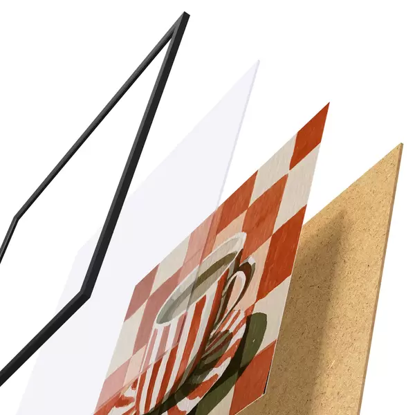 Plakát se skládá z rámu, plexiskla, tištěného obrazu a dřevotřískového podkladu. Díky úchytům na zadní straně lze plakát ihned zavěsit na zeď.