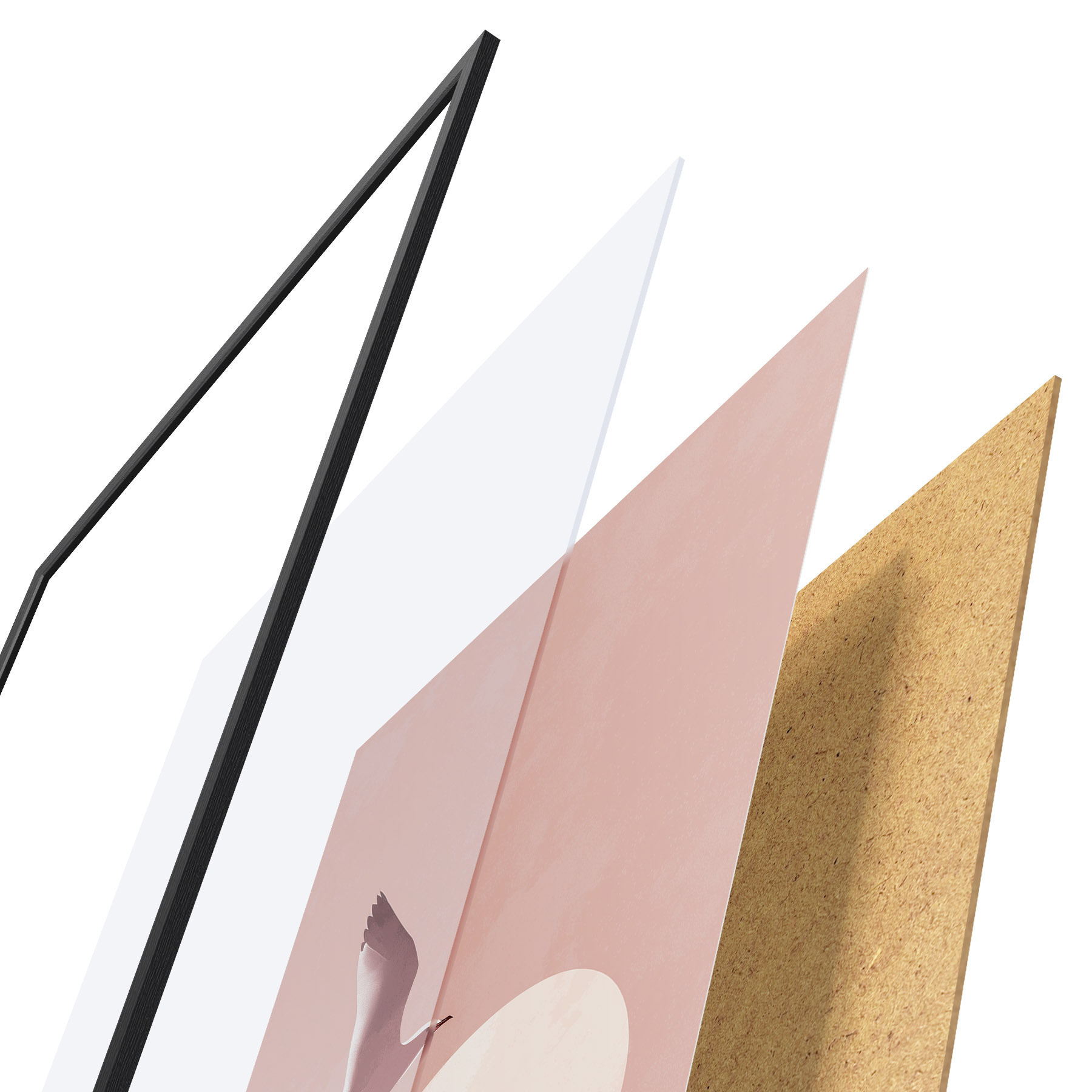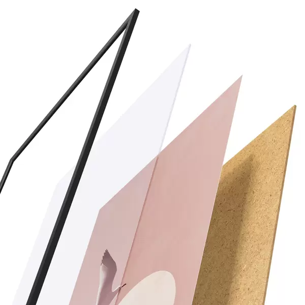 Plakát se skládá z rámu, plexiskla, tištěného obrazu a dřevotřískového podkladu. Díky úchytům na zadní straně lze plakát ihned zavěsit na zeď.