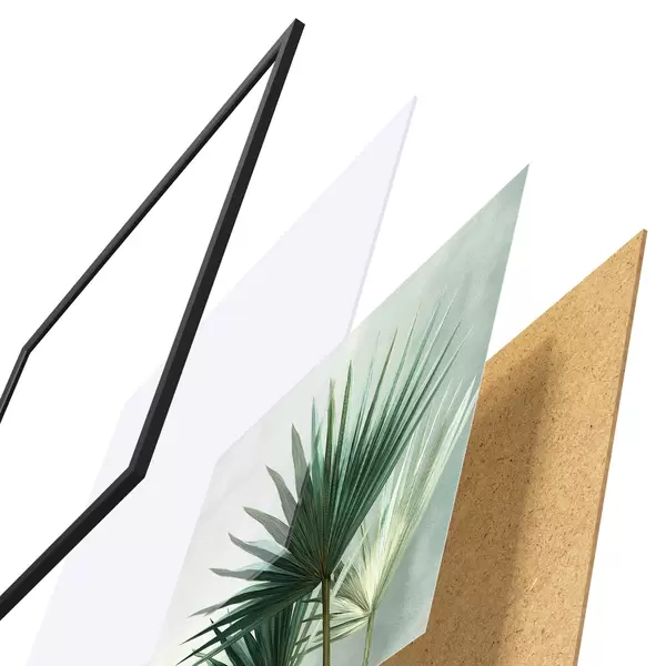 Plakát se skládá z rámu, plexiskla, tištěného obrazu a dřevotřískového podkladu. Díky úchytům na zadní straně lze plakát ihned zavěsit na zeď.