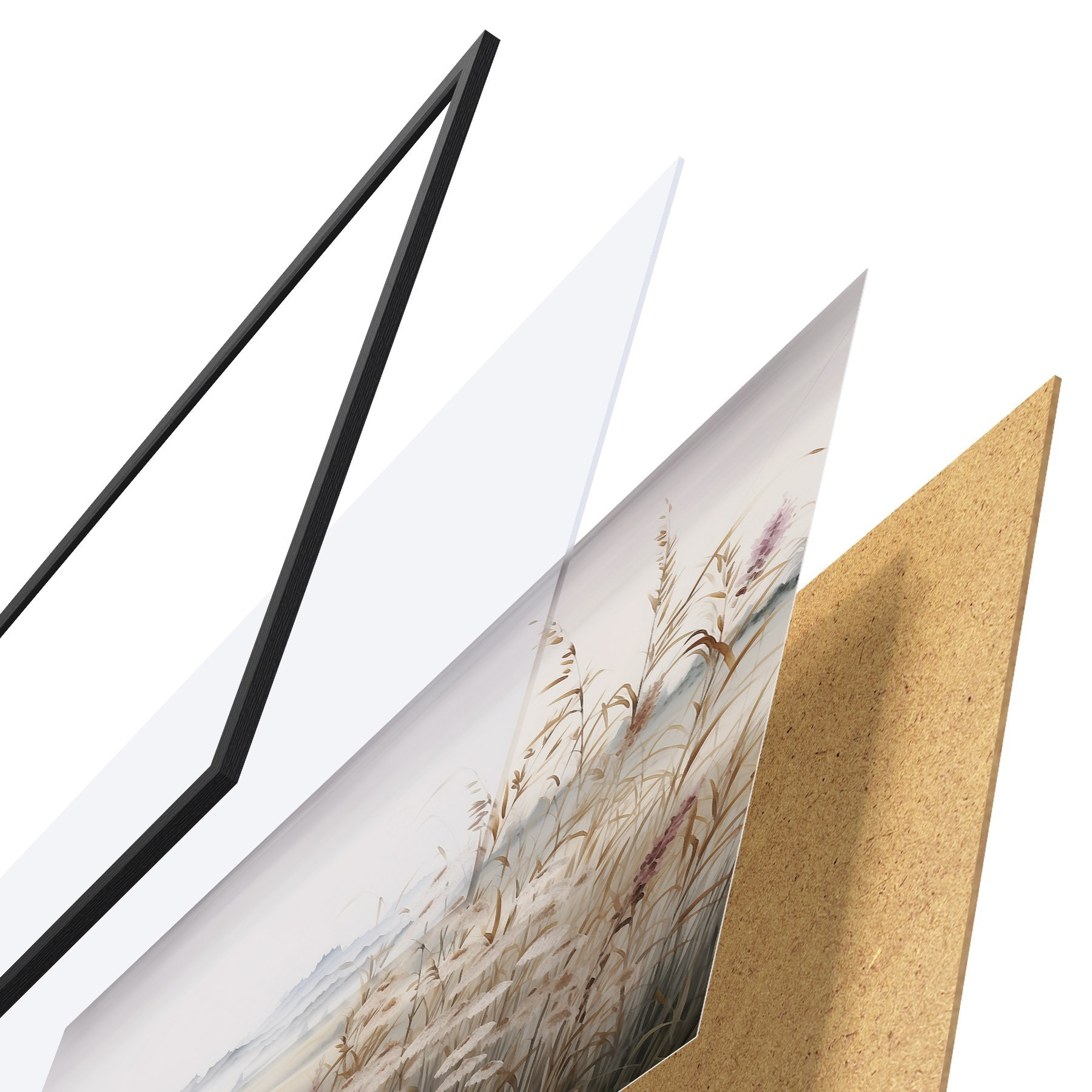 Plakát se skládá z rámu, plexiskla, tištěného obrazu a dřevotřískového podkladu. Díky úchytům na zadní straně lze plakát ihned zavěsit na zeď.