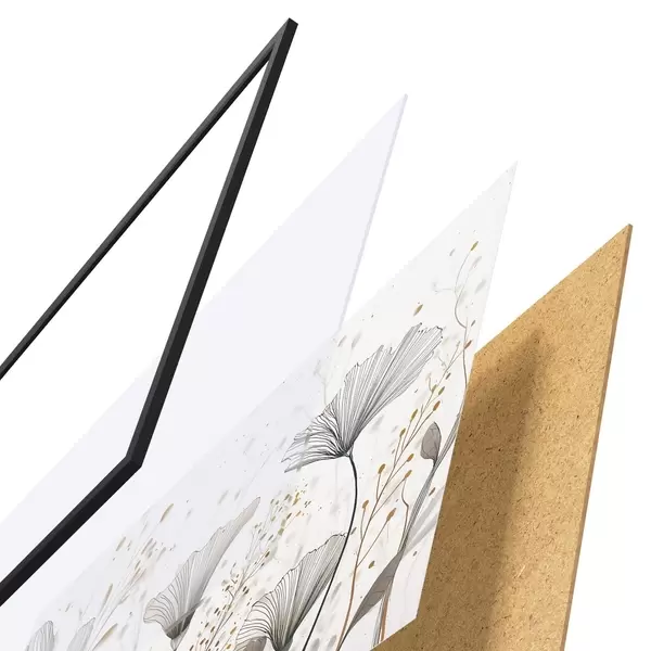 Plakát se skládá z rámu, plexiskla, tištěného obrazu a dřevotřískového podkladu. Díky úchytům na zadní straně lze plakát ihned zavěsit na zeď.