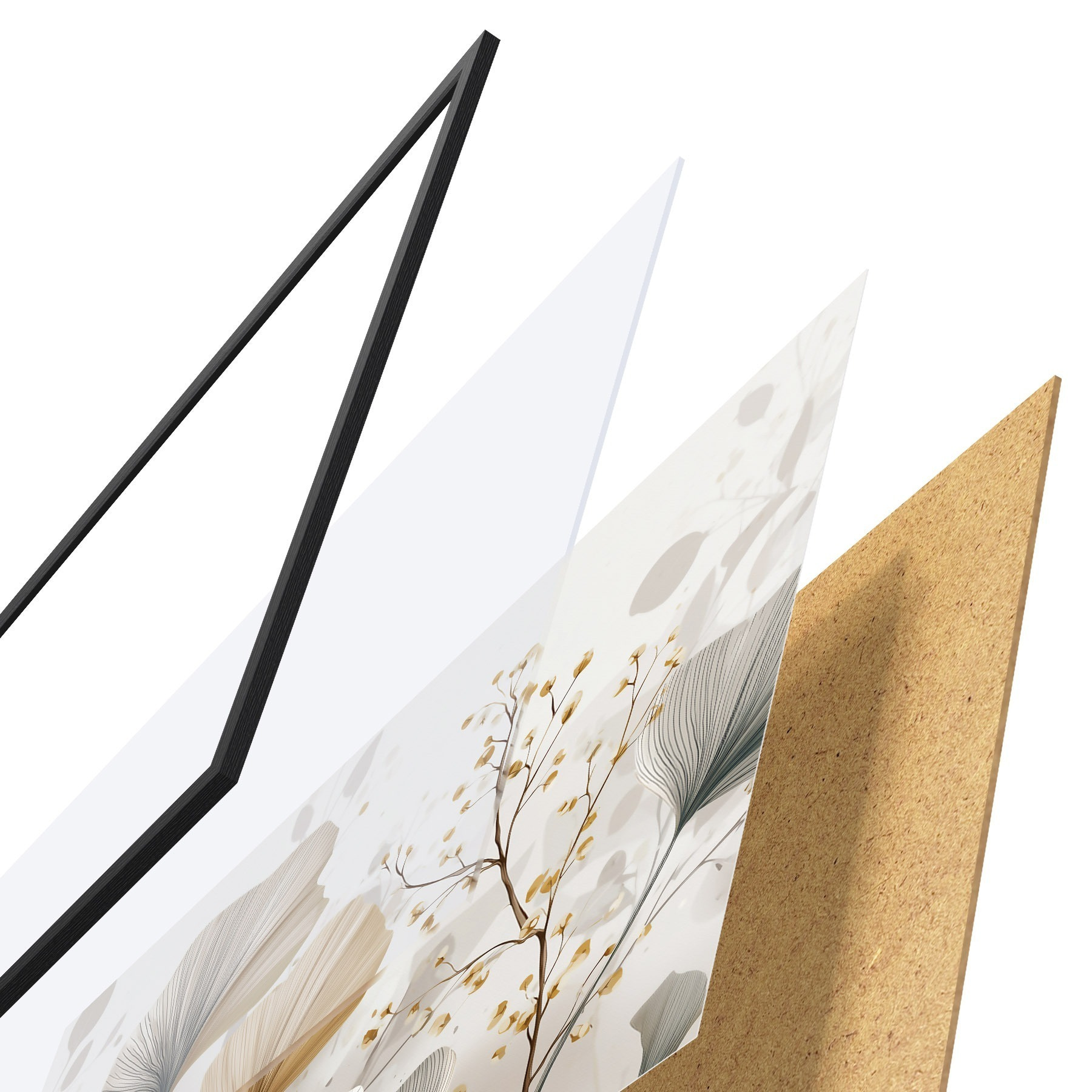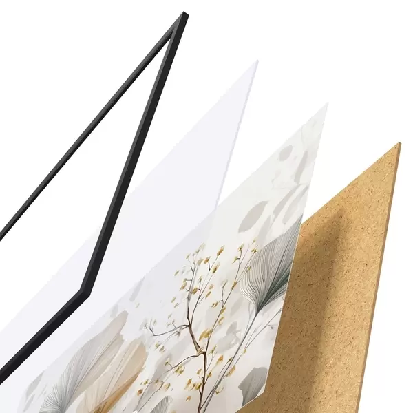 Plakát se skládá z rámu, plexiskla, tištěného obrazu a dřevotřískového podkladu. Díky úchytům na zadní straně lze plakát ihned zavěsit na zeď.