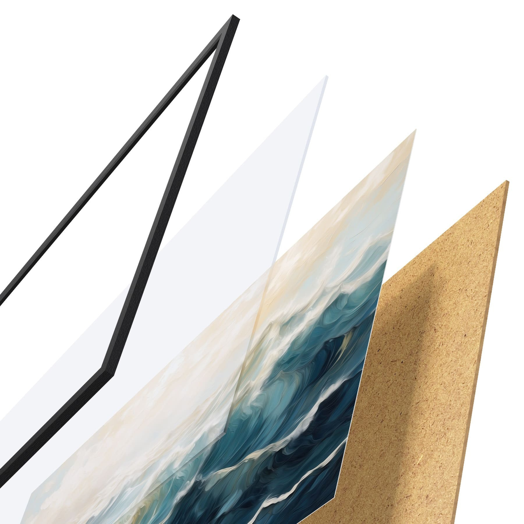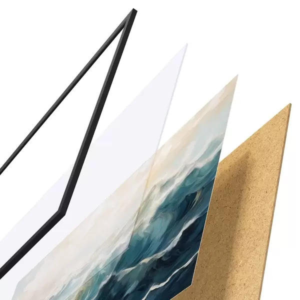Plakát se skládá z rámu, plexiskla, tištěného obrazu a dřevotřískového podkladu. Díky úchytům na zadní straně lze plakát ihned zavěsit na zeď.