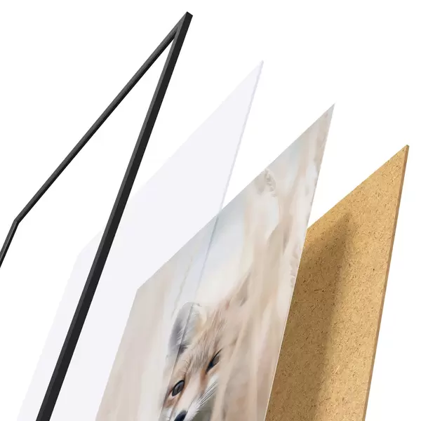 Plakát se skládá z rámu, plexiskla, tištěného obrazu a dřevotřískového podkladu. Díky úchytům na zadní straně lze plakát ihned zavěsit na zeď.
