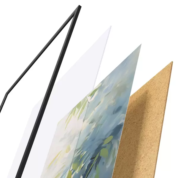 Plakát se skládá z rámu, plexiskla, tištěného obrazu a dřevotřískového podkladu. Díky úchytům na zadní straně lze plakát ihned zavěsit na zeď.