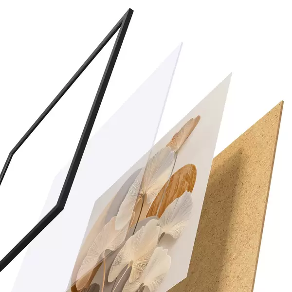 Plakát se skládá z rámu, plexiskla, tištěného obrazu a dřevotřískového podkladu. Díky úchytům na zadní straně lze plakát ihned zavěsit na zeď.