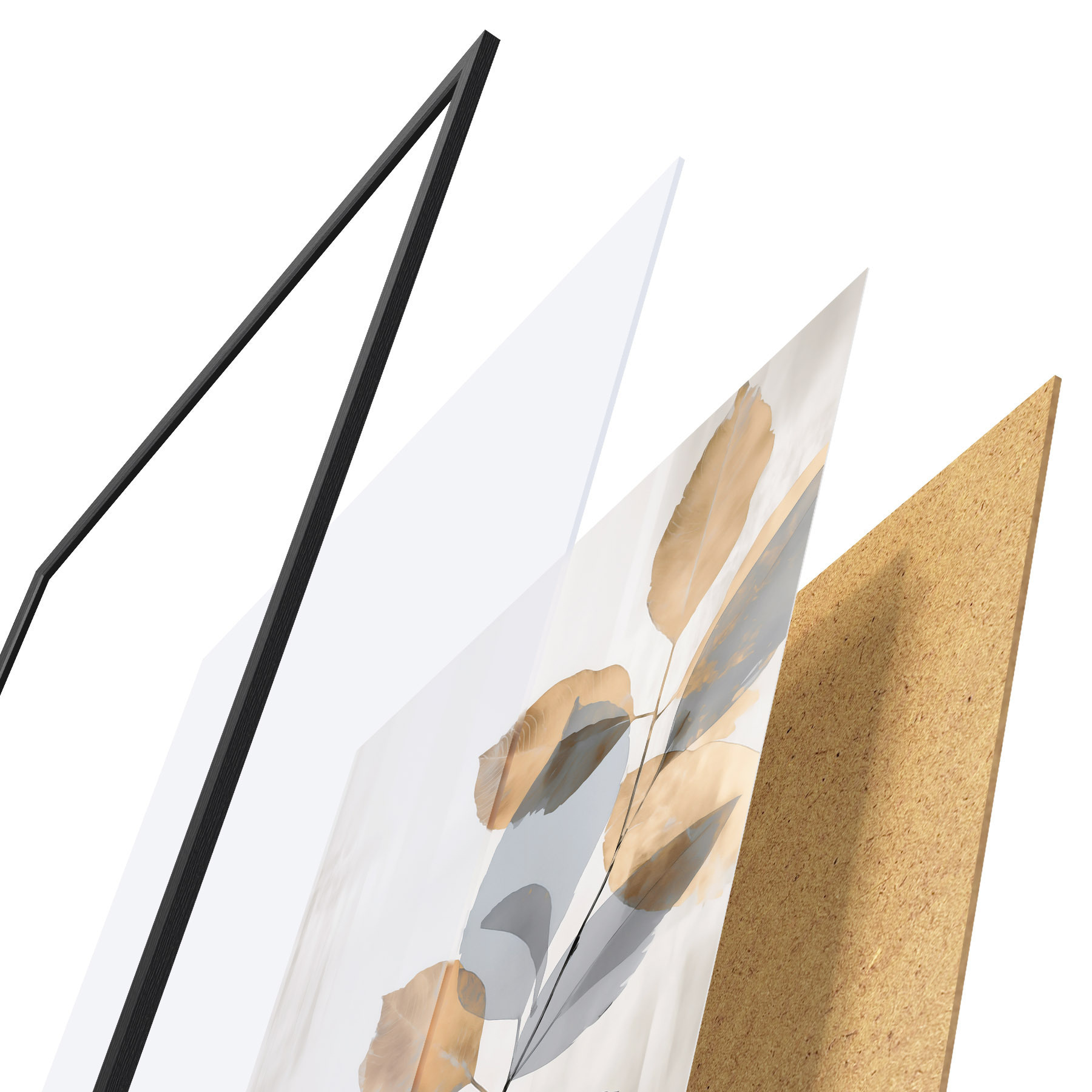 Plakát se skládá z rámu, plexiskla, tištěného obrazu a dřevotřískového podkladu. Díky úchytům na zadní straně lze plakát ihned zavěsit na zeď.