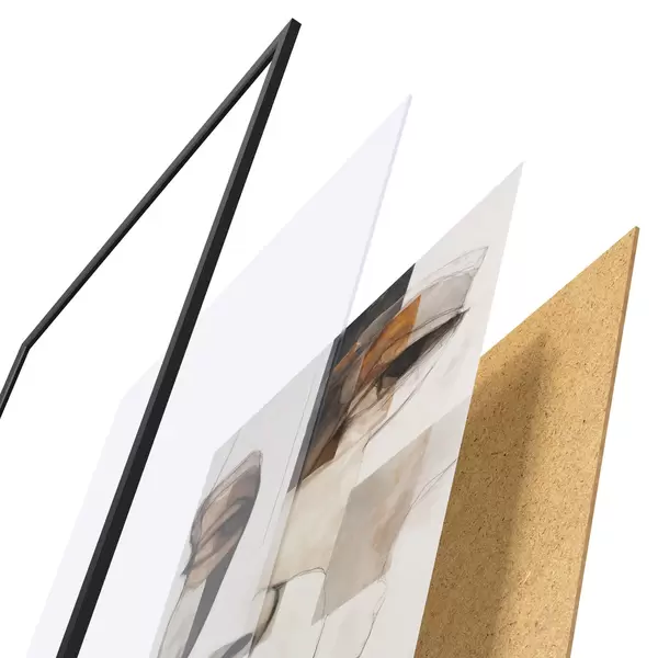 Plakát se skládá z rámu, plexiskla, tištěného obrazu a dřevotřískového podkladu. Díky úchytům na zadní straně lze plakát ihned zavěsit na zeď.