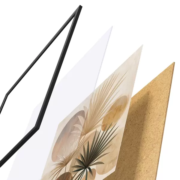 Plakát se skládá z rámu, plexiskla, tištěného obrazu a dřevotřískového podkladu. Díky úchytům na zadní straně lze plakát ihned zavěsit na zeď.